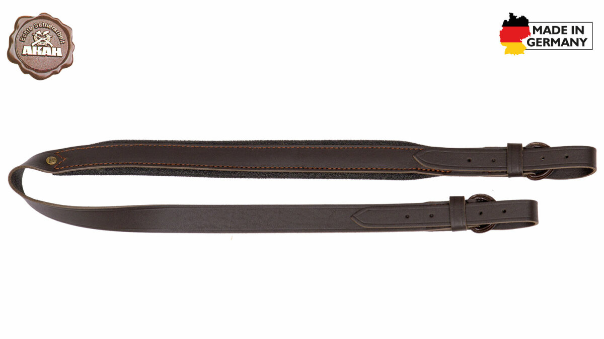 Unser AKAH Gewehrriemen aus bestem Vollrindleder besticht durch sein klassisches, zeitloses Design! Er verfügt über 2 lederüberzogene Schnallen und ist mit einem praktischen Anti-Rutsch-Belag ausgestattet. Länge: 105 cm | Breite: 25 mm Echte Handnähte: Überall dort, wo der Riemen das Gewicht der Waffe halten muss, wird nach uralter Sattlertradition von Hand genäht. Leder: Wir verwenden nur Leder aus pflanzlicher Gerbung, d.h. keine Chemie, keine Allergiegefahr, keine Umweltbelastung – reine Natur!