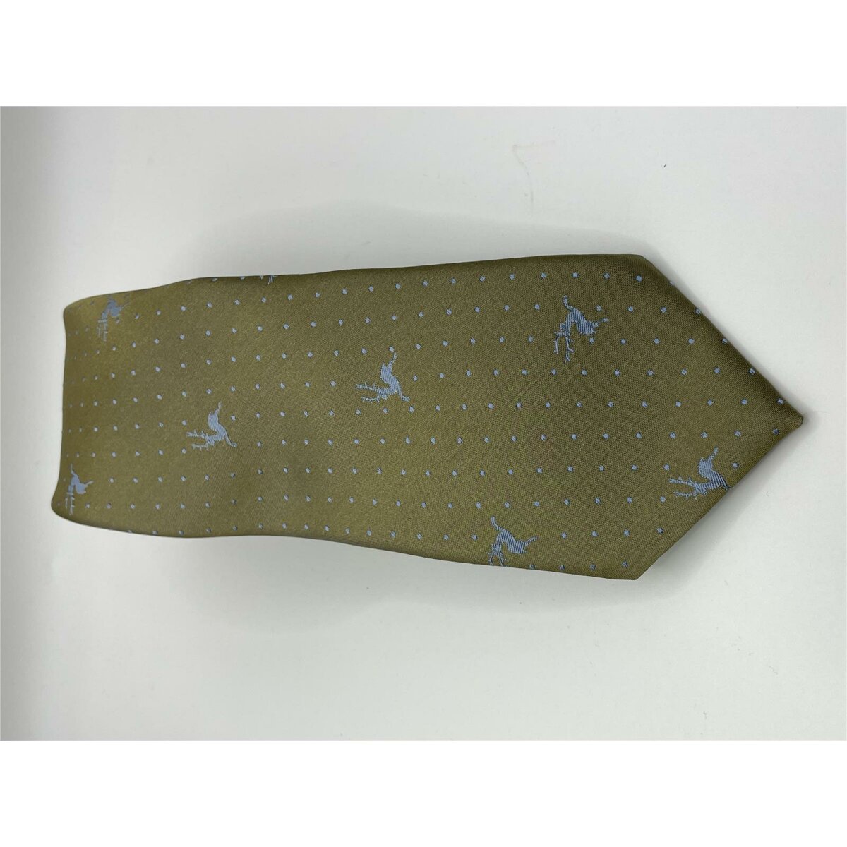 Krawatte oliv Motiv Blauer Hirsch mit blauen Punkten