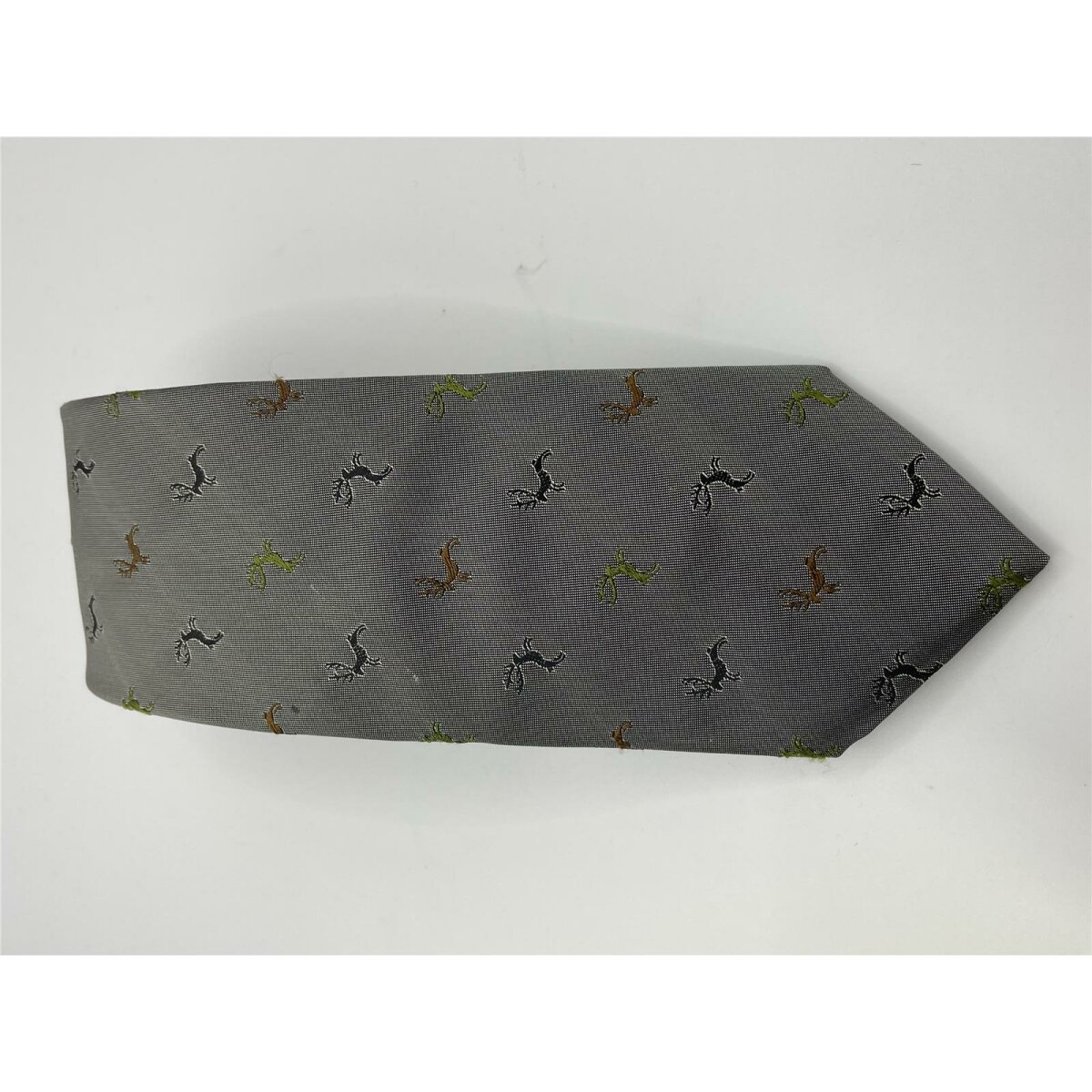 Krawatte silber Motiv schwarze, braune und grüne Hirsche