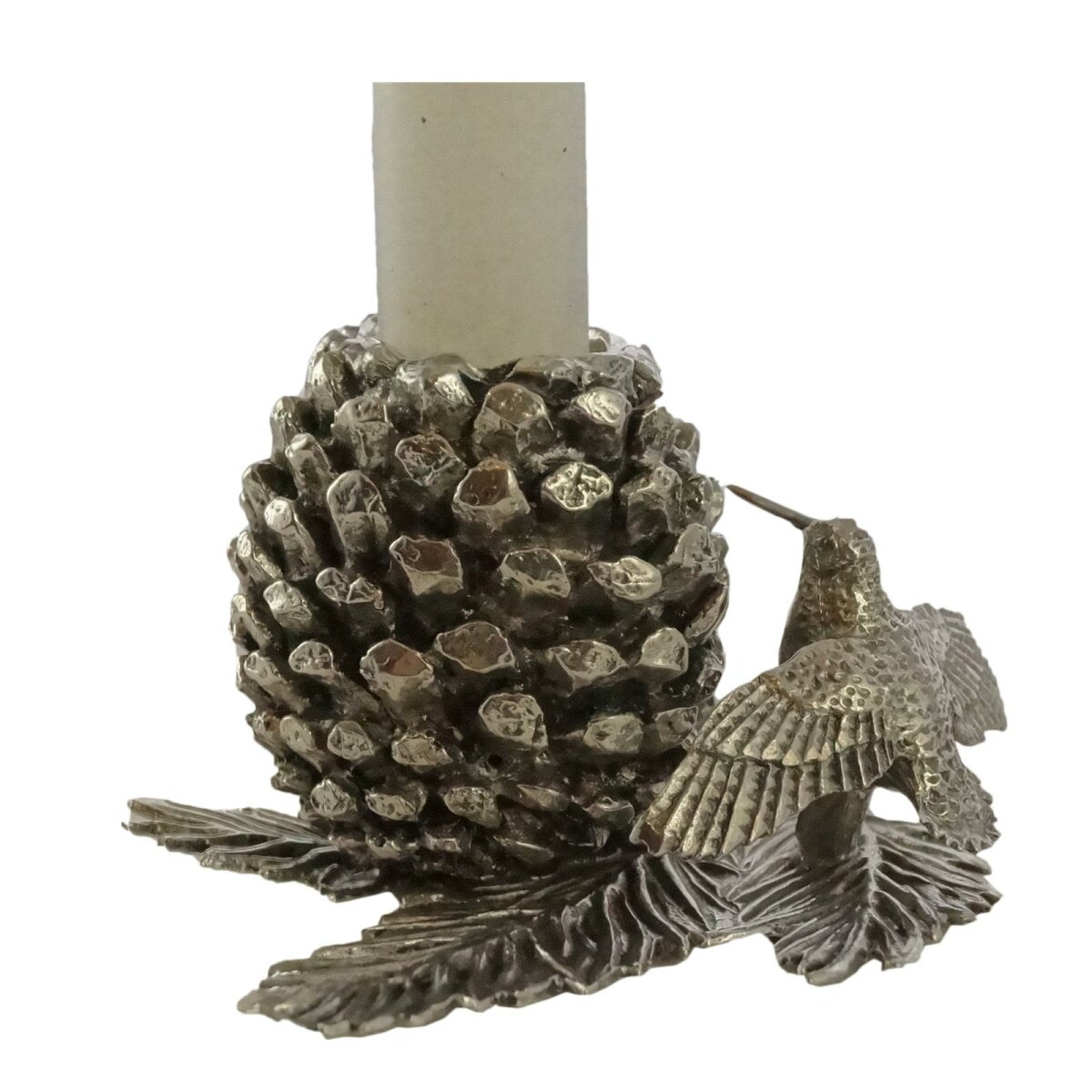 Lovergreen Accessoires Motiv Kerzenhalter Motiv: Kiefernzapfen mit Waldschnepfe (Bougeoir pin bécasse étain) H 6
