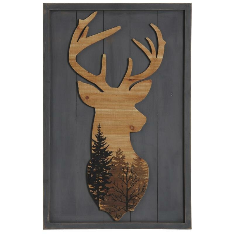 Lovergreen Dekoration Motiv Holzramen mit Hirsch Abbildung (Cadre bois cerf – Bois peint) 48 x 2 x 72 / 2,75 kg
