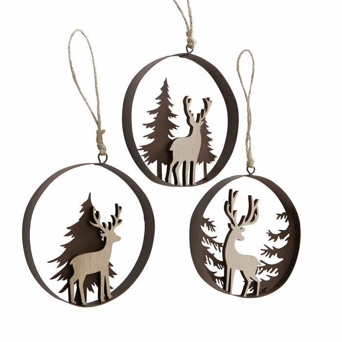Lovergreen Dekoration Motiv Set mit 3 runden Anhängern Hirsch – Metall / Holz