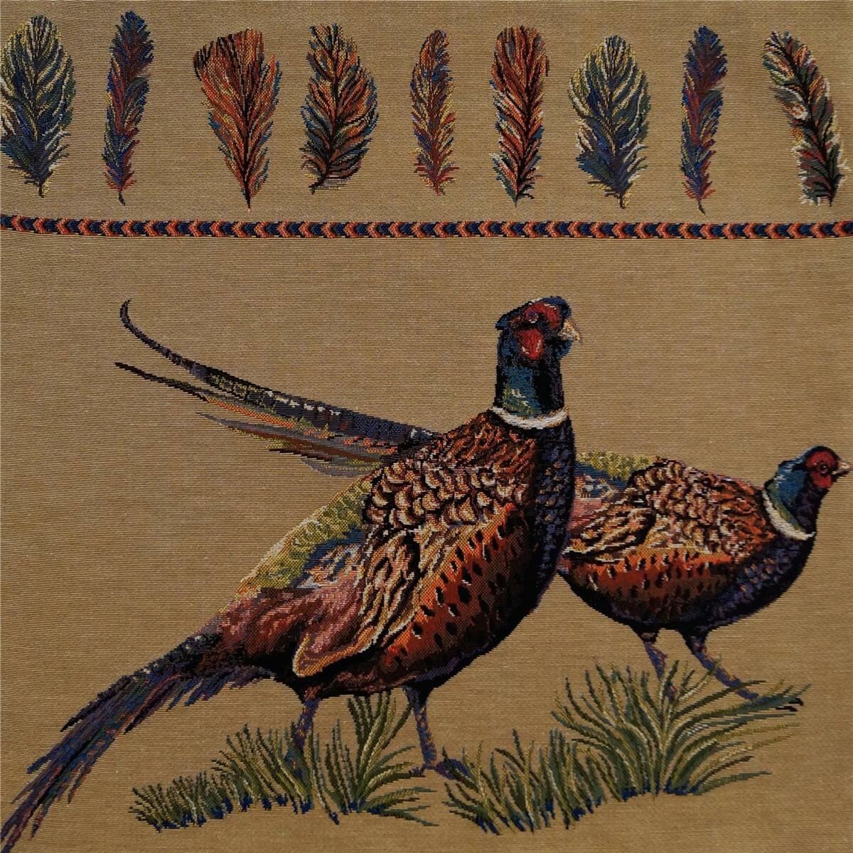 Lovergreen Kissen Motiv Kissen 2 Fasane + Federn-Abbildungen (Coussin 2 faisans + plumes ) 50 x 50