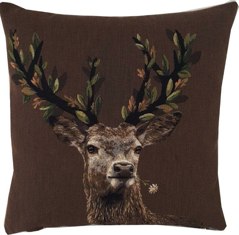 Lovergreen Kissen Motiv Kissen Gedrehter Hirschkopf + Laub (Coussin tête de cerf tournée + feuillage) 50 x 50