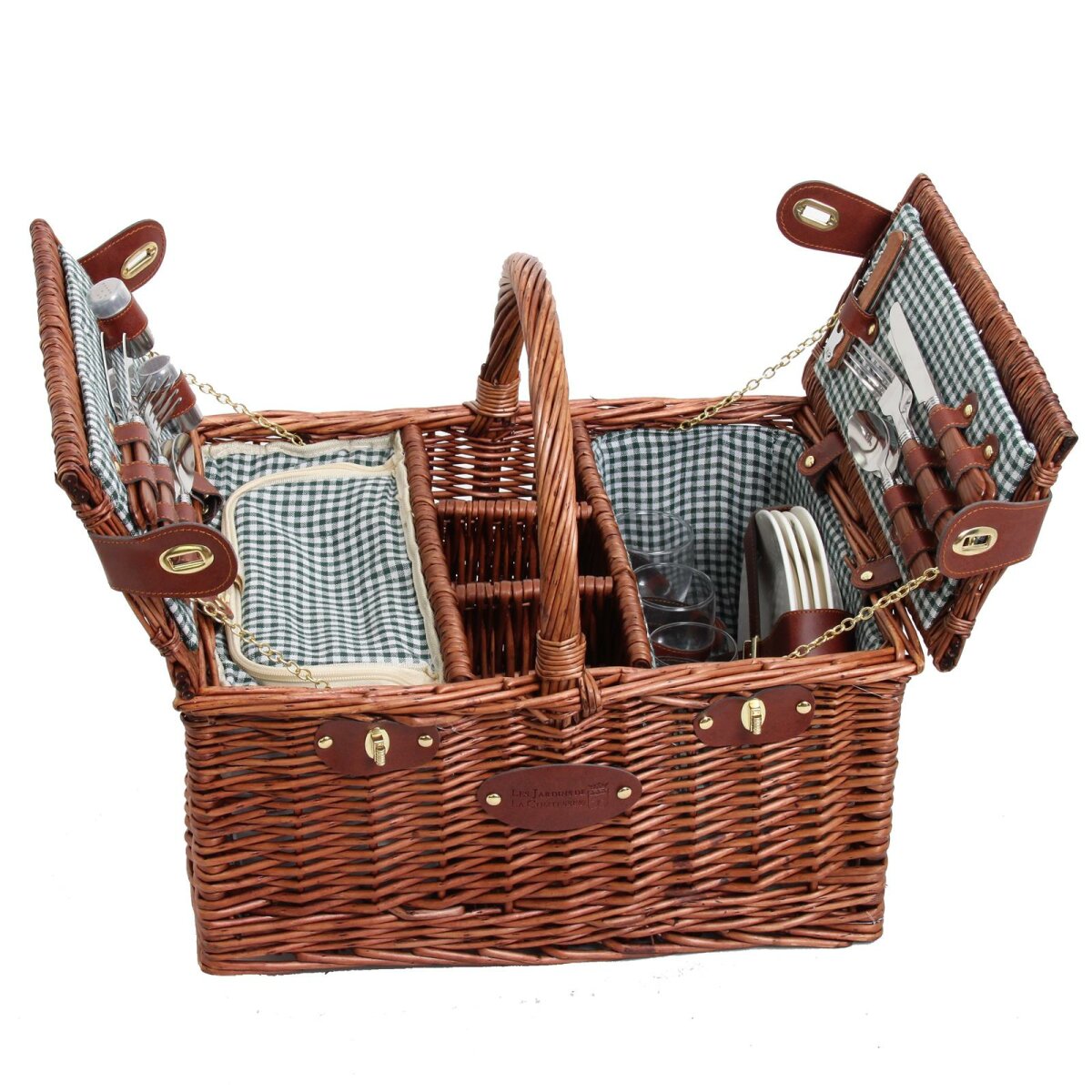 Lovergreen Picknick Motiv Picknickkorb für vier Personen Saint Germain vichy grün (Panier pique-nique P-20005 Saint Germain vichy vert) 46 x 33 x 24/40