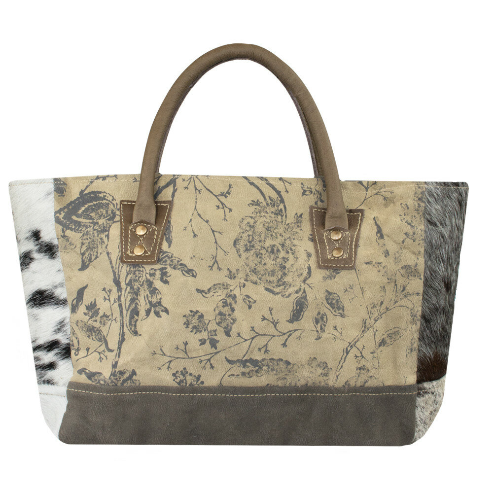 Lovergreen Taschen Motiv Handtasche aus Vintage-Leder und Baumwolle