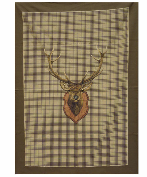 Lovergreen Tischdecken Motiv Reisedecke Hirschkopf mit kariertem Hintergrund