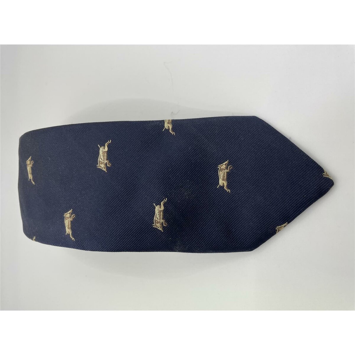 Robert Keyte Krawatte 100% Seide dunkelblau Motiv beige Wildschwein