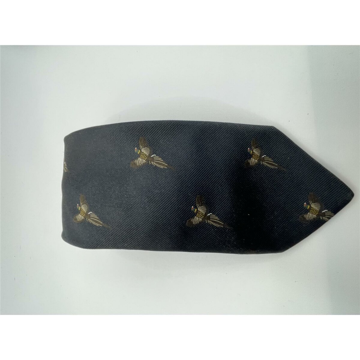 Robert Keyte Krawatte 100% Seide dunkelblau Motiv Fasan