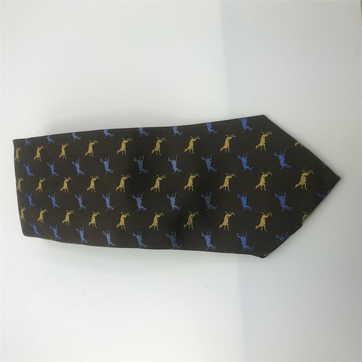 Robert Keyte Krawatte 100% Seide dunkelbraun Motiv beiger und hellblauer Hund
