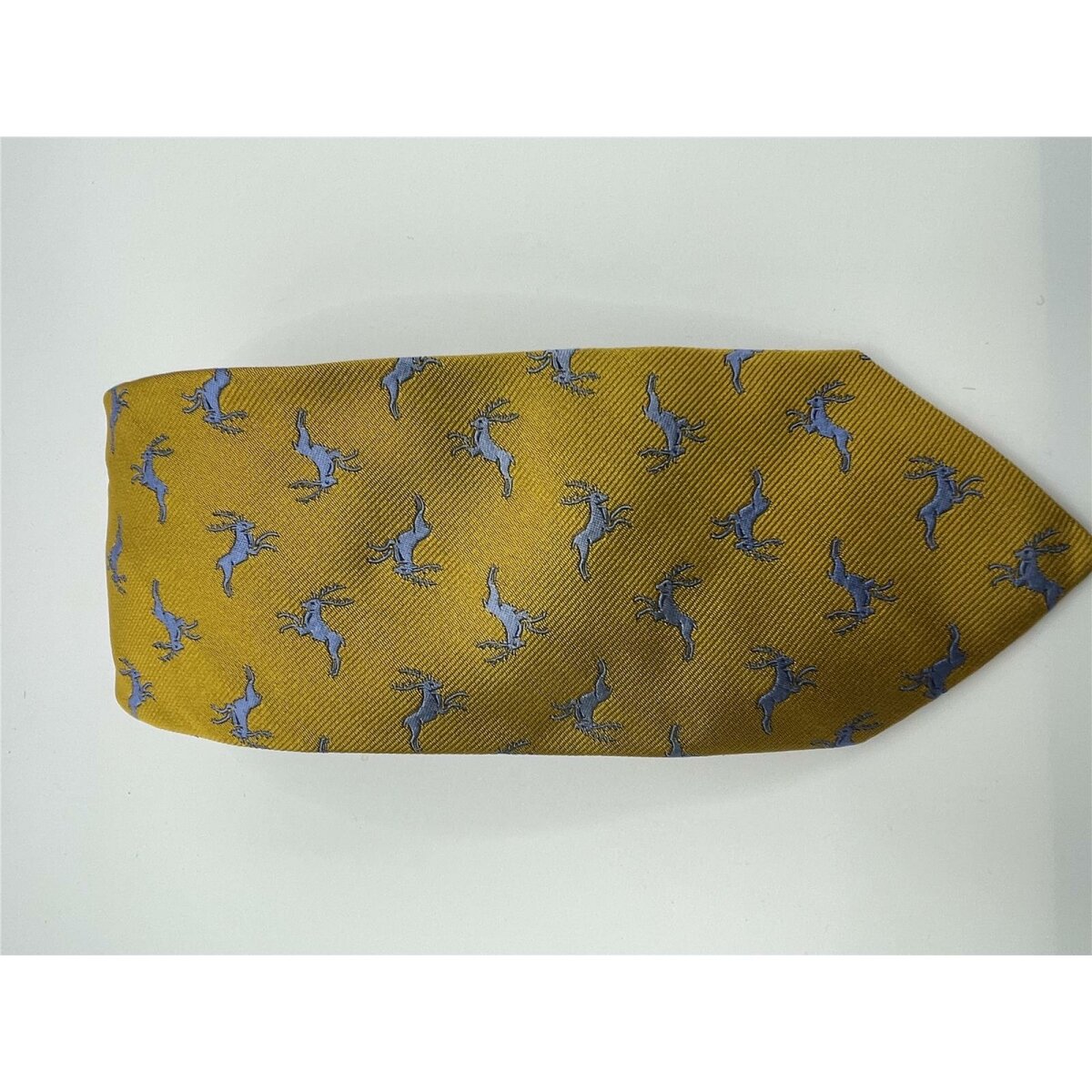 Robert Keyte Krawatte 100% Seide gold farben Motiv hellbauer Hirsch
