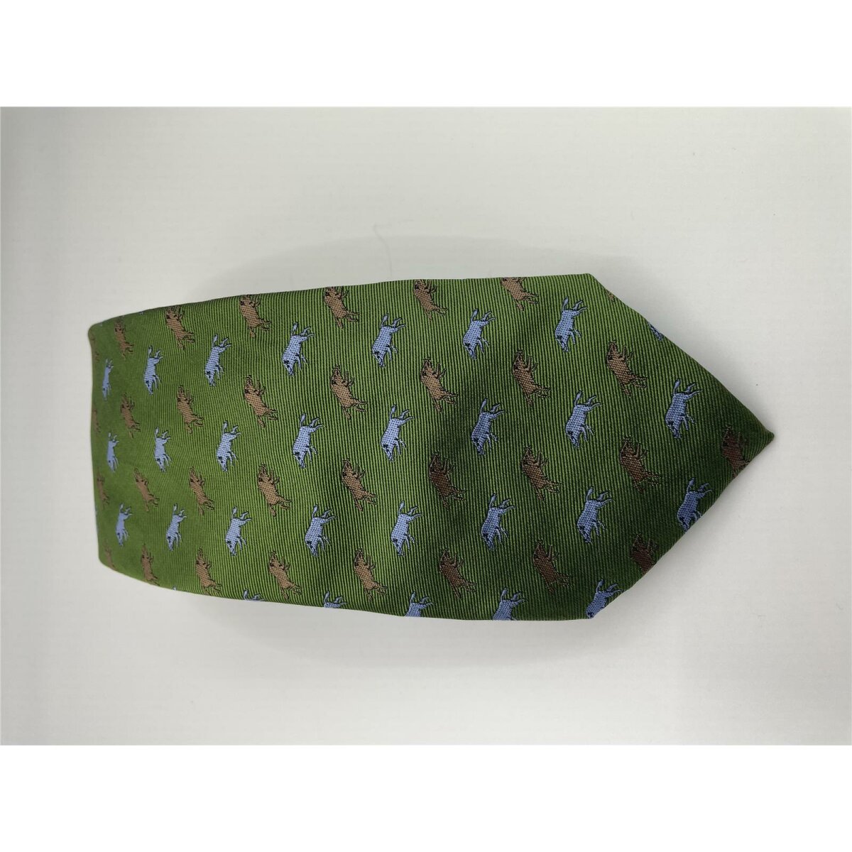Robert Keyte Krawatte 100% Seide grün Motiv Silberne und braun Wildschweine
