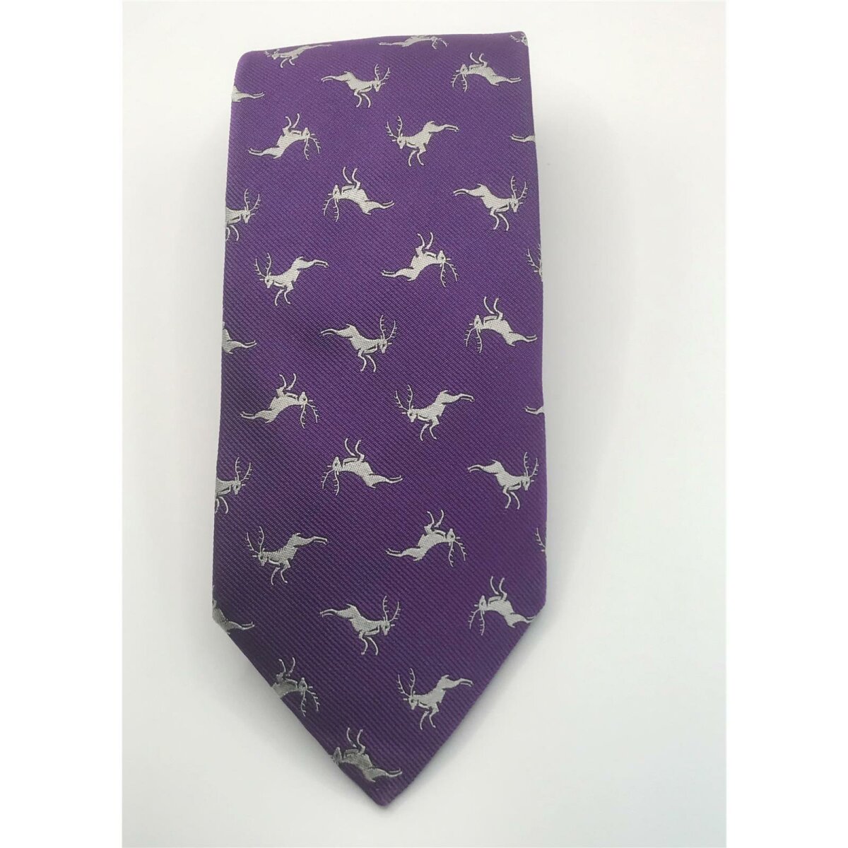 Robert Keyte Krawatte 100% Seide lila Motiv silberner Hirsch