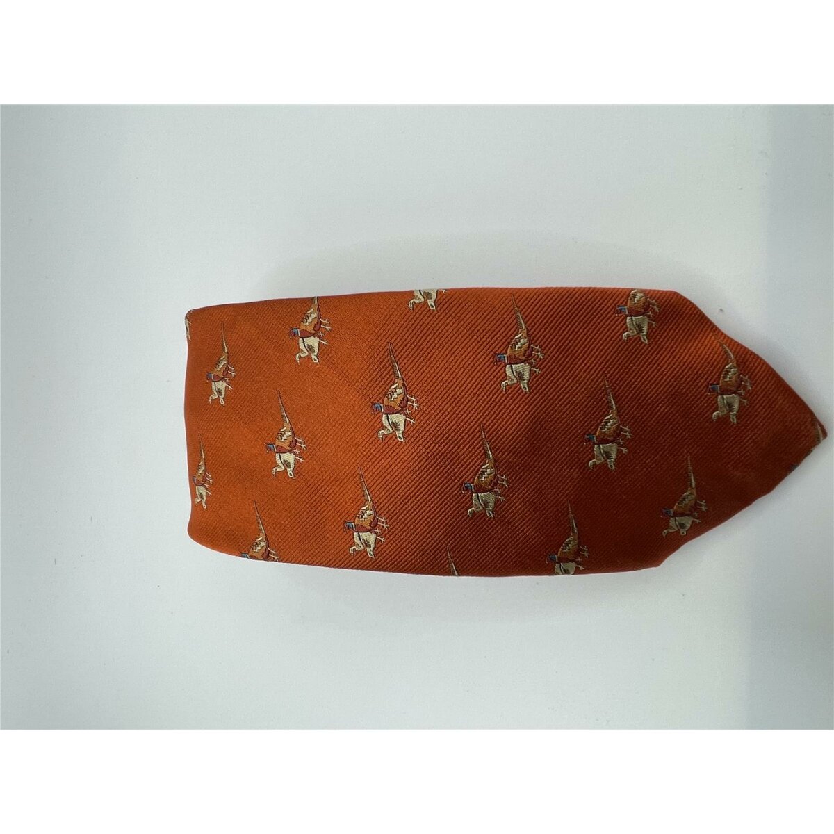 Robert Keyte Krawatte 100% Seide orange Motiv Fasan: Hahn und 2 Hennen
