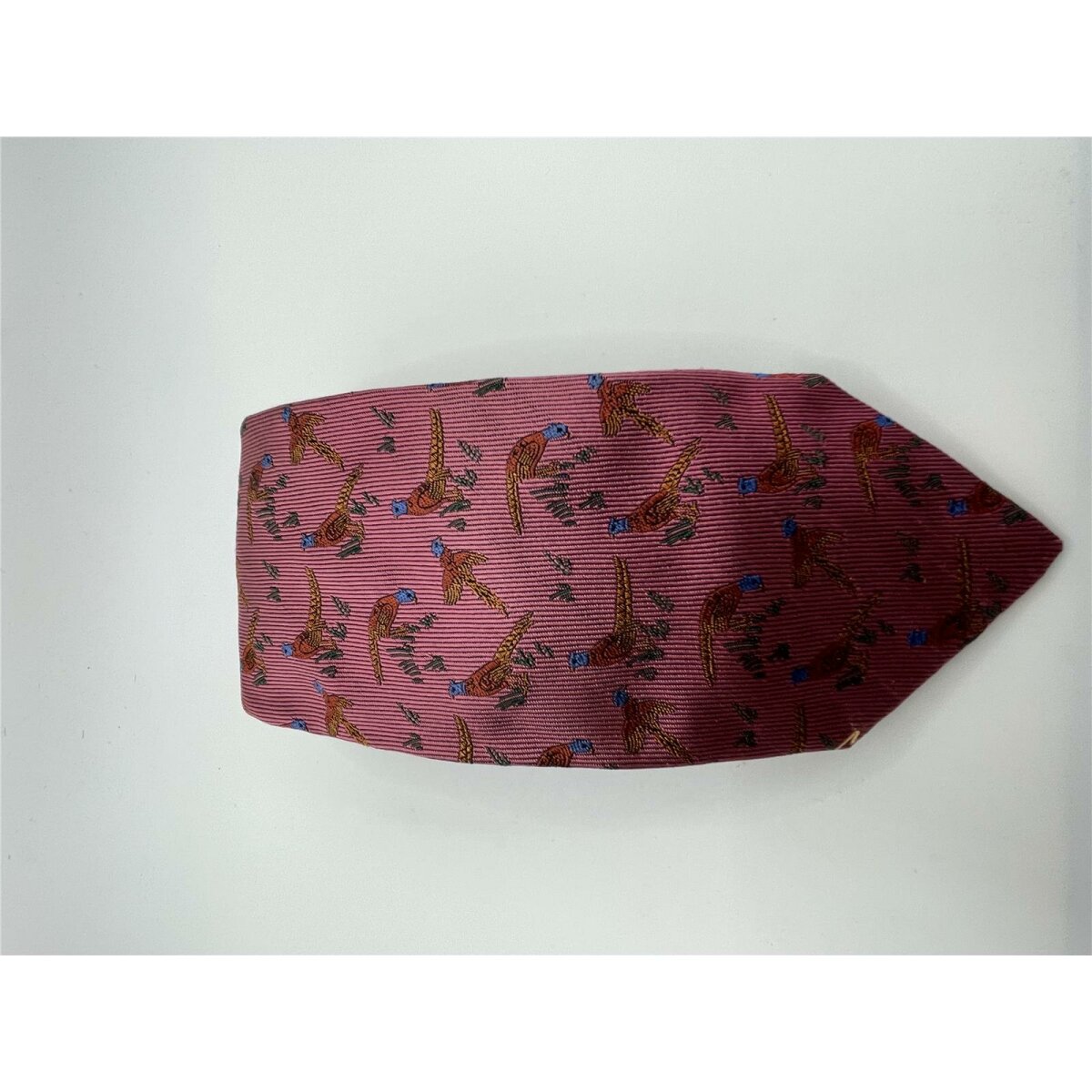 Robert Keyte Krawatte 100% Seide rosa Motiv Fasan