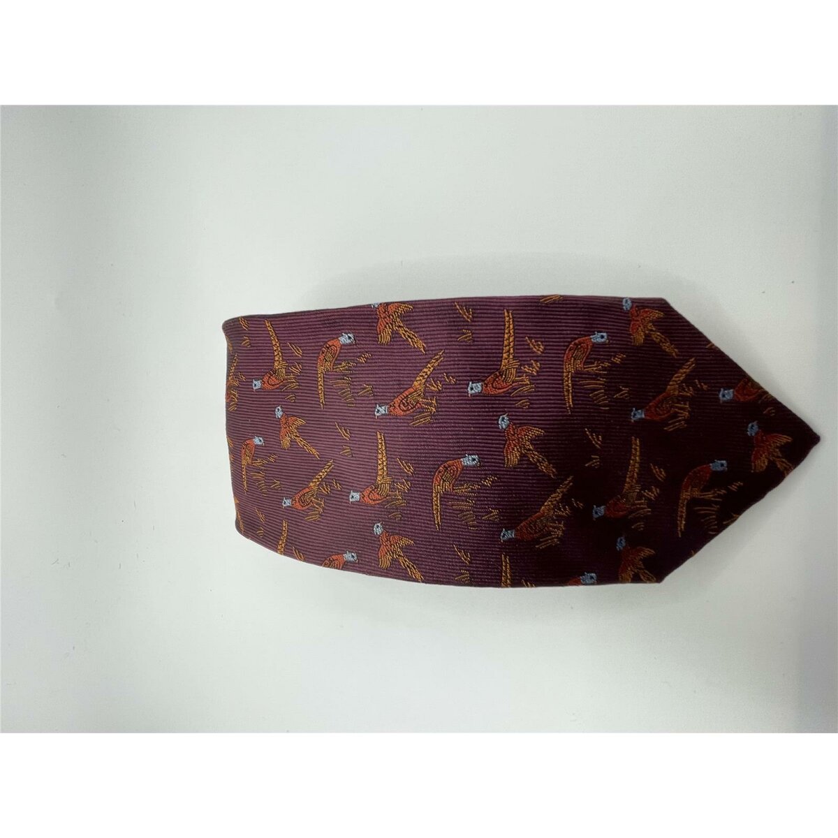Robert Keyte Krawatte 100% Seide weinrot Motiv Fasan