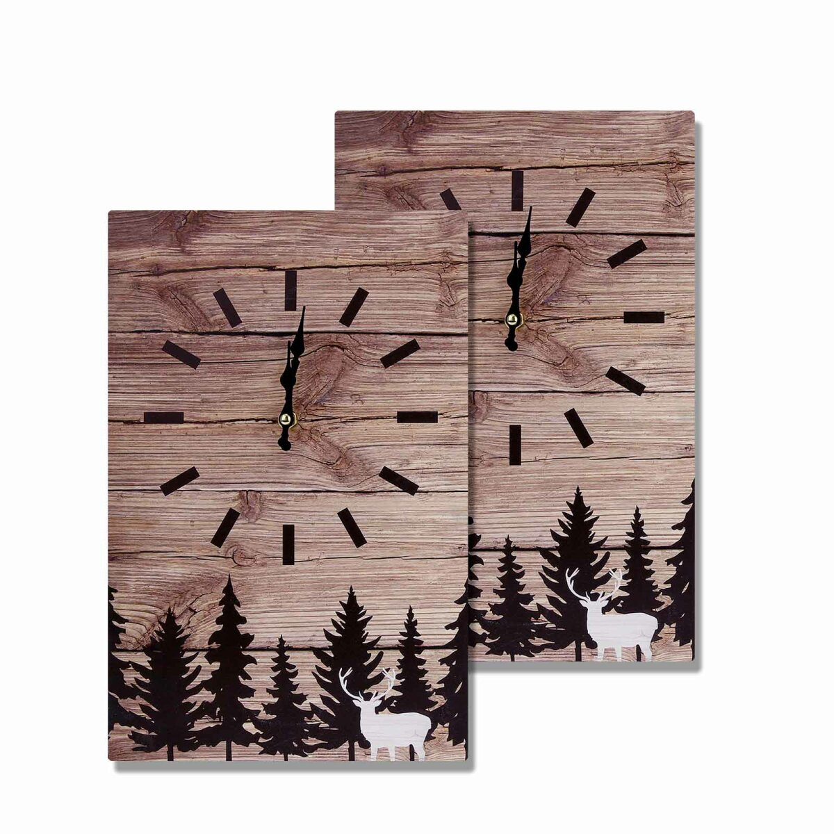Die Uhren sind aus Metall im angesagten Holzdesign. Unter dem gut lesbaren Zifferblatt steht ein weißer Hirsch im dunklen Hochwald. Batterie-Laufwerk. Für den Transport bruchsicher verPackte Zeiger. Breite: 25 cm x Höhe: 38 cm Lieferung erfolgt ohne Batterien. 2 Wanduhren im Set .