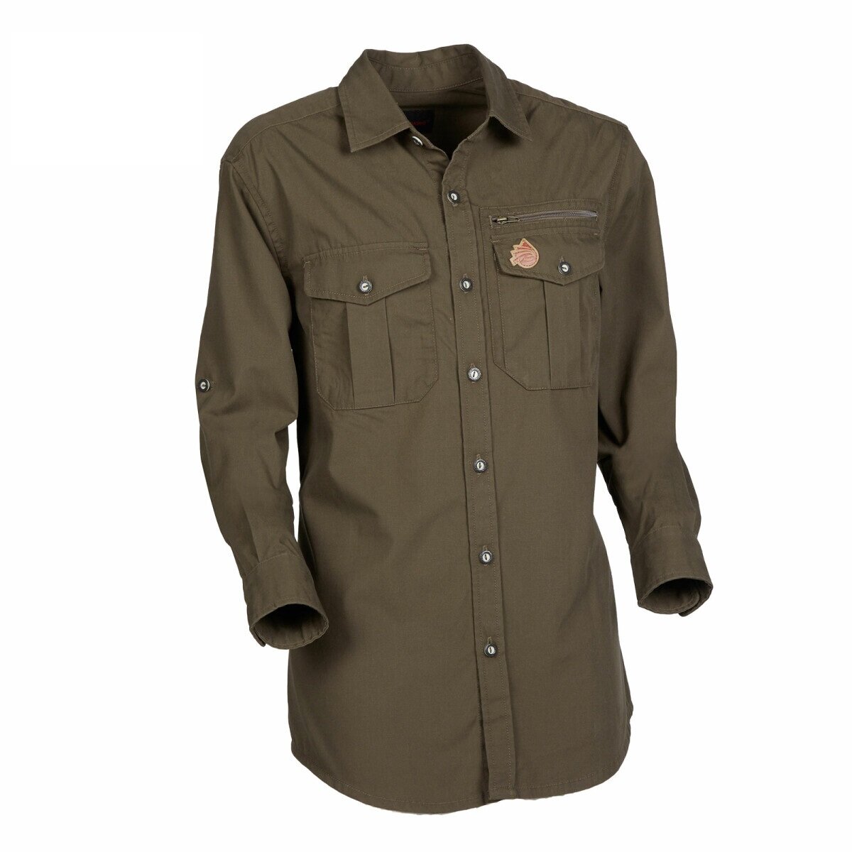 Klassisches Jagdhemd mit optimaler Rückenventilation. Merkmale: 2 Pattentaschen mit Falte extra Reißverschluss Tasche Krempelarm Schulterklappen leicht dehnfähig Material: 65% Polyester, 35% Baumwolle gebürstet Enthält nicht-textile Teile tierischen Ursprungs.