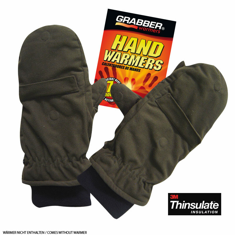 Wasserdicht, mit Thinsulate gefüttert, lautlos, rutschfeste InnenHand. Tasche für GRABBER und ONLY HOT Handwärmer. Fingerkappe zum Umklappen, Magnetverschluss, Pulsstulpe. Schießfinger. 100 % Polyester.