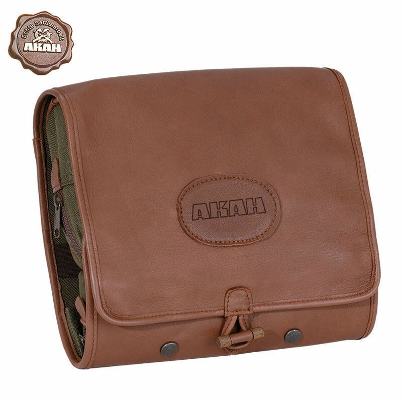 Der ideale Reisebegleiter! Ausgerollt kann man dieses Waschetui an einen Haken hängen und muss sich nicht über die stets zu kleinen Ablagen im Bad ärgern. Die beiden großen Etuis sind abknöpfbar und können bei Bedarf auch einzeln verwendet werden. Das Waschetui verfügt weiterhin über praktische Schub-, Steck- und Reißverschlussfächer. Die Kulturtasche ist innen mit robustem wasserfesten Nylon gegen Nässe beschichtet. Das Außenmaterial besteht aus hochwertigem, natürlich gegerbtem Elchleder. Elchleder hat den Vorteil, dass es sehr robust und soft zugleich ist.  Die Kulturtasche wurde zu 100% in Deutschland gefertigt! Maße BxHxT: 34 x 29 x 9 cm